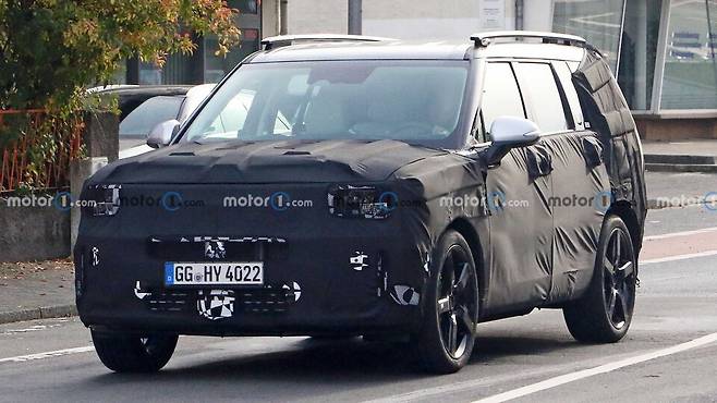 여전히 두꺼운 위장막으로 덮여 구체적인 디자인은 알 수 없지만, 전면부는 사각형태의 LED 헤드램프와 현대차의 'H'를 형상화한 주간주행등(DRL) 그래픽을 적용해 독특하고 차별화된 요소를 보여준다. 기아 모하비보다도 각지고 웅장한 모습을 보여줄 것으로 기대된다.