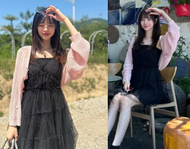 진세연은 블랙 나시 원피스에 핑크색 니트 볼레로를 매치해 여성스러운 여름 코디를 완성했습니다. 그녀의 스타일은 여름에 어울리는 가벼운 느낌을 주면서도 러블리함이 돋보였습니다.