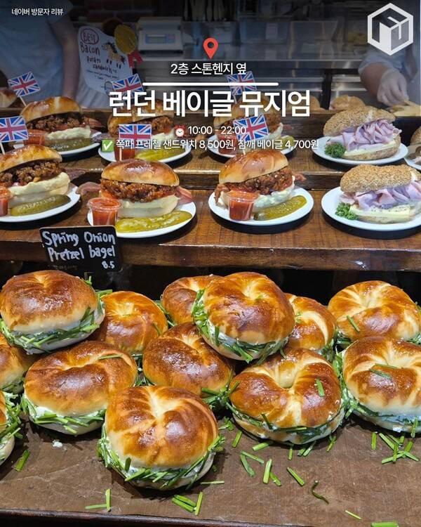 SNS에서도 화제가 된 런던 베이글 뮤지엄은 스타필드 수원에서도 만날 수 있습니다. 베이글 특유의 쫄깃한 식감에 감칠맛 나는 재료가 더해진 샌드위치는 브런치나 간식으로 딱 좋은 메뉴입니다.