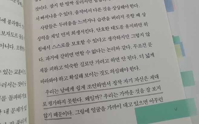 로랑스 드빌레르는 책 『모든 삶은 흐른다』에서 이렇게 말한다. “우리는 남에게 쉽게 조언하면서 정작 자기 자신은 제대로 평가하지 못한다. 우리는 가까운 것을 잘 보지 않기 때문이다.”