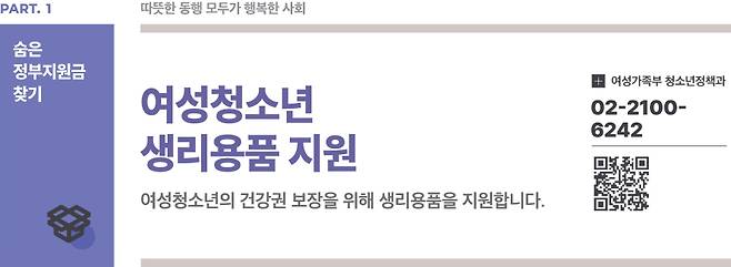 · 여성청소년 생리용품 바우처 지원(월 1만 4,000원), 국민행복카드로 구매
