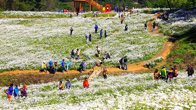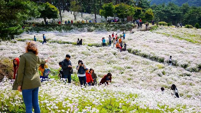 정원의 전체 면적은 약 22ha(약 6만 6천 평). 이 중 구절초가 군락을 이룬 면적만도 11ha(약 3만 3천 평)에 이른다.