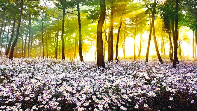 가을이라면 으레 붉은 단풍을 떠올리지만, 전라북도 정읍의 가을은 달랐다. 소나무 숲 아래 끝없이 펼쳐진 순백의 구절초 군락은 마치 하얀 눈이 내린 듯 신비롭다.
