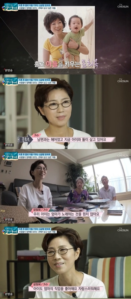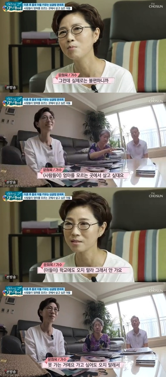 2019년 방송된 TV조선 ‘인생다큐 마이웨이’에서 가수 문희옥은 아들에게 미안해했습니다. 이날 방송에서 가수 문희옥은 “아들과 둘이 살고 있다. 남편과 헤어졌다. 엄마가 노래하는 걸 원치 않는다. 엄마 직업을 좋아하고 자랑스러워하는데 불편하니까. 사람들이 엄마를 모르는 곳에서 살고 싶다고 한다. 그래서 존중해준다. 학교도 오지 말라고 해서 안 간다. 못 가는 거다”고 말했습니다.
