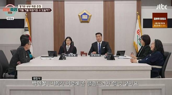 조정의원과 변호사들의 설득에 결국 아내는 "우리 아들이 독립하겠다면 찬성한다. 넓은 세상 좋다. 식견도 넓히고"라며 아들의 독립을 받아들였다.