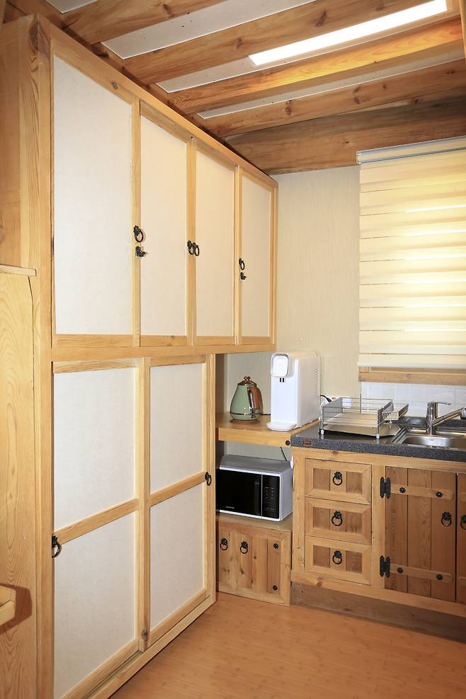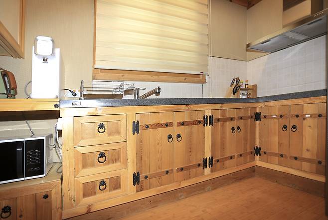한옥의 정체성은 역시 구들방에 있다. 여기에 필수적인 아궁이와 굴뚝도 작품이다. 특징은 아궁이를 외부에 두지 않고 내부로 끌어들인 것이다. 마치 시골 부엌과 같은 느낌을 내기 위해 특별히 만든 공간이다. 건축주 아내는 “저희 가족은 이곳에서 자주 아궁이 장작불을 이용해 고구마, 고등어, 대파 등 다양한 요리를 해먹어요. 삽겹살도 아궁이에서 구워낼 수 있어 바비큐 공간으로도 충분히 활용할 수 있답니다.”라며 은근한 자랑을 늘어놓았다.