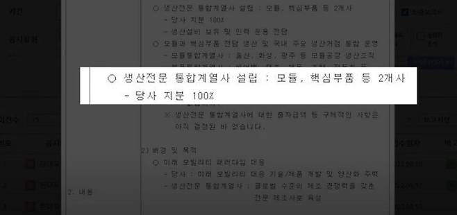 자사 사업부문을 떼내 100% 자회사를 세우겠다는 내용입니다. 100% 자회사니 기존 주주들에겐 지분을 안 주는 '물적 분할' 방식이죠. 내용을 단편적으로만 봐선 생산 조직을 떼내 계열사로 둠으로써 해당 사업부문의 전문성을 배가하고, 모회사는 신사업에 좀 더 방점을 찍겠다는 방향성으로 해석돼요.