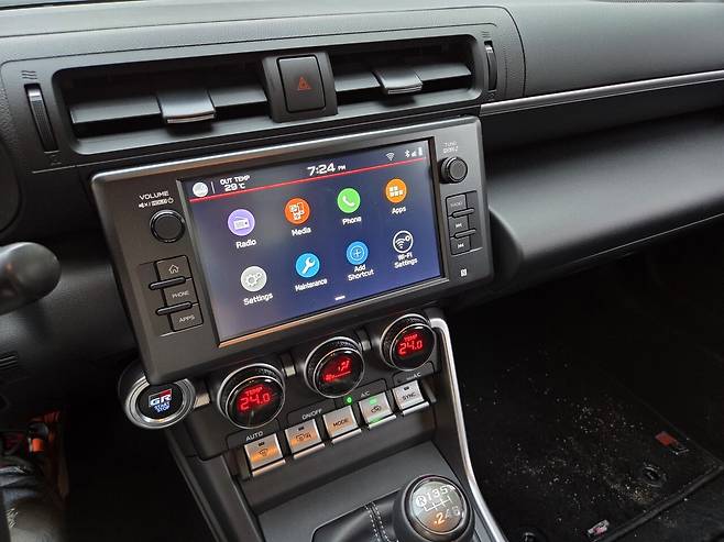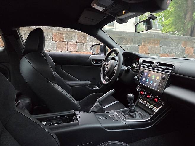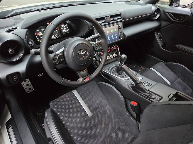 실내는 철저하게 기능 중심이다. 편의장비는 최소화됐으며, 8인치 터치스크린 디스플레이와 애플 카플레이, 안드로이드 오토 기능 정도가 전부다. 하지만 주행에 집중할 수 있도록 설계된 운전석 포지션과 정보 전달에 집중된 계기판 구성은 오히려 GR86의 목적성과 정체성을 선명히 한다. 등받이를 눕힌 듯한 운전 자세, 낮은 전고, 가벼운 차체는 모두 '펀 드라이빙'에 최적화돼 있다.