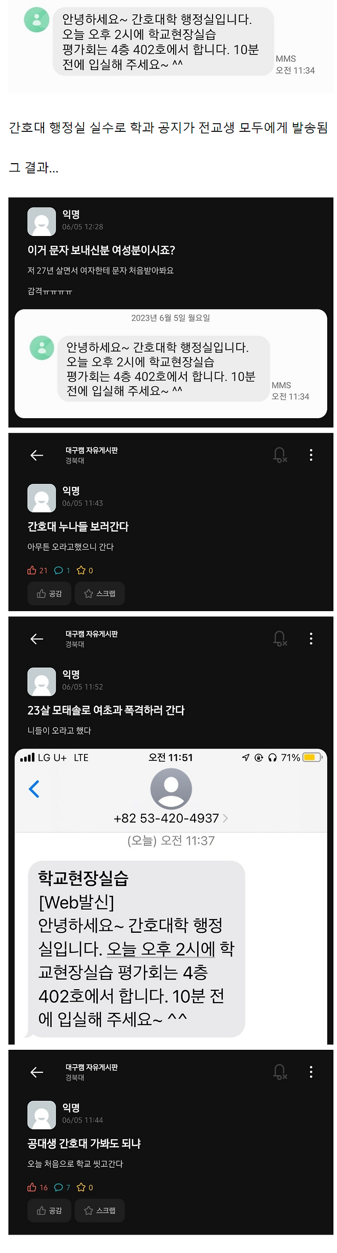 실수로 전교생에게 공지를 날렸던 경북대 간호대학 행정실