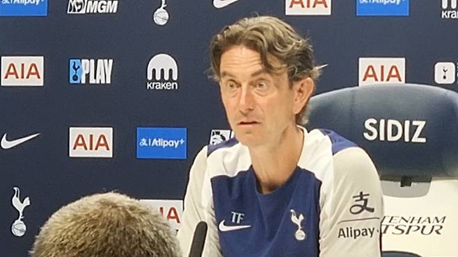 토마스 프랑크 신임 토트넘 감독이 처음으로 대중 앞에 섰다. 18일 영국 런던 토트넘 홋스퍼 트레이닝 센터에서 첫 기자회견을 가졌다.