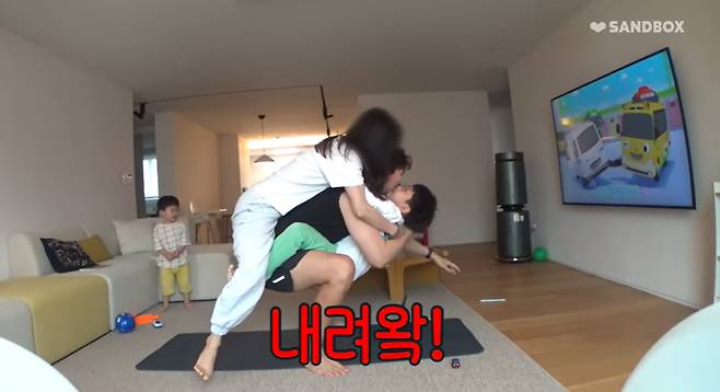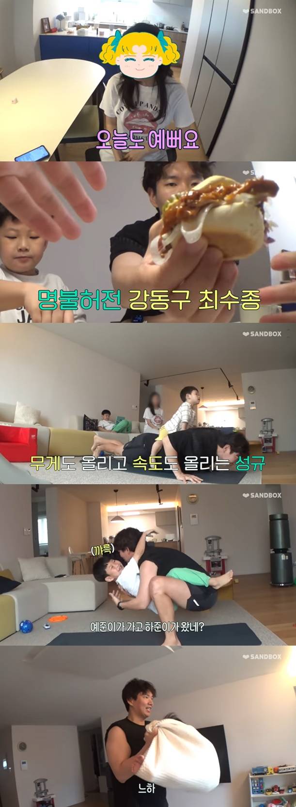 장성규는 "며칠 뒤면 방송에 복귀해야 한다"며 "살을 좀 빼야 한다"고 말했다. 그는 "운동하는 모습을 보여드리겠다"며 아들을 등에 업고 푸시업을 했다. 이어 스쿼트를 하는 그에게 온 가족이 매달렸다. 오붓한 네 가족의 모습이 훈훈한 미소를 자아낸다.