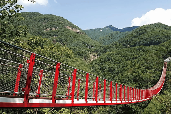 경기도 파주와 연천의 경계에 있는 감악산 출렁다리는 봄이 되면 생기 넘치는 자연 속에서 트레킹을 즐기기 좋은 명소로 각광받고 있습니다. 특히 150m 길이의 출렁다리는 탁 트인 계곡 위에 놓여 있어 다리 위에서 내려다보는 풍경이 압도적인데요. 산 아래로 흐르는 시냇물과 연두빛으로 물든 숲이 어우러져 봄날의 싱그러움을 온몸으로 느낄 수 있는 장소입니다.