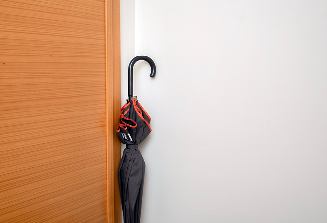 우산은 물기를 털어 말린 뒤 보관하거나, 바닥에 물받이가 있는 우산꽂이를 사용하면 위생 관리에 도움이 됩니다.