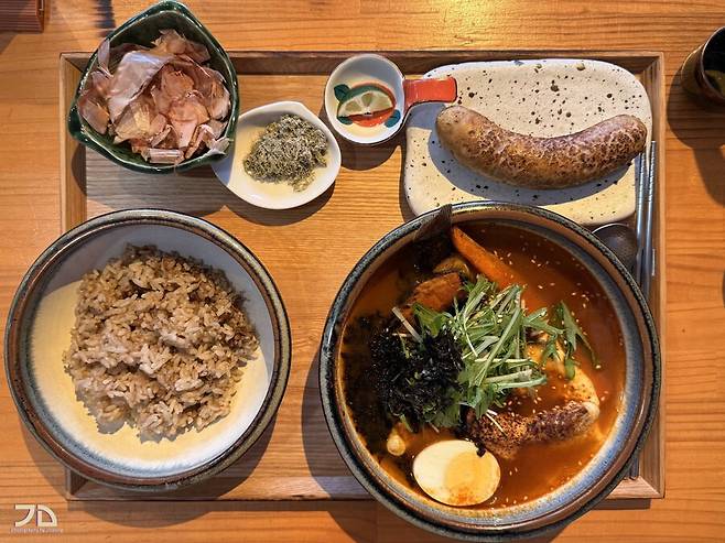 제가 주문한건 스프카레 + 치즈토핑추가 + 소시지 세트. 단품이 있고, 소시지 세트가 있고, 다찌석 앞에서 바로 토치로 구워주는 소고기 세트가 있습니다. 근데 먹어보니 소시지는 맛있긴 한데 이 스프카레에는 별로 어울리지 않아서... 그냥 소고기 세트를 먹거나 아니면 단품으로 먹는게 나을 것 같습니다. 그리고 치즈 토핑도 비추.