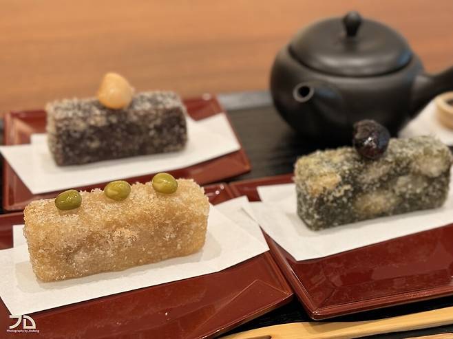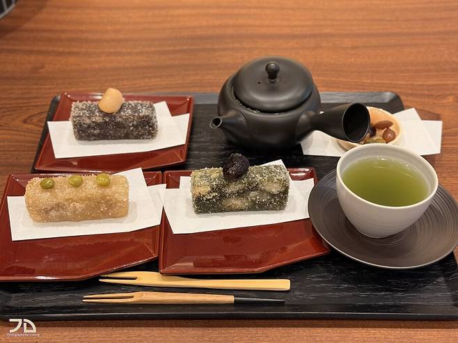 찐한 팥으로 만들고 튀겨서 헤비한 디저트에 맑은 녹차가 잘 어울리지만, 가격은 조금 높은 느낌.