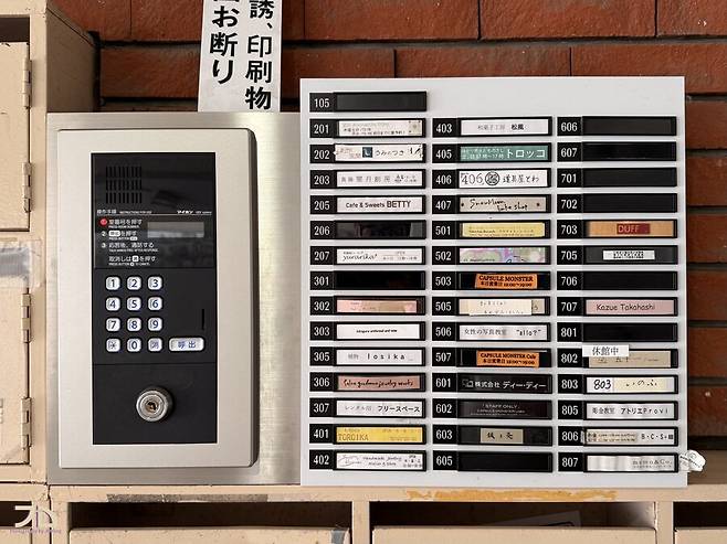 입장도 특이합니다- 8층짜리 주상복합 같은 상가건물에 있고, 입구는 굳게 닫혀있습니다. 여기서 503호를 호출하면 문을 열어줘서 엘리베이터를 타고 올라가는 구조입니다. 503호는 케잌하고 디저트를 파는 곳이고, 507호는 거기서 산 디저트를 가지고 가서 추가로 커피를 주문해 앉아서 마실 수 있는 간이 미니카페입니다. 보니까 건물 자체에 다른 카페들도 몇몇 있는 것 같습니다.