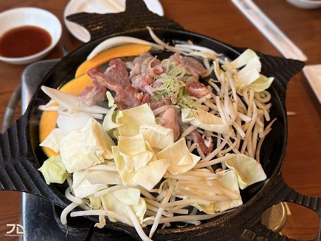 열심히 구워먹습니다. 야채도 당연히 무한리필. 양념 위주의 구성이다보니 불판이 쉽게 탑니다... 다행히 불판은 교체 가능합니다.