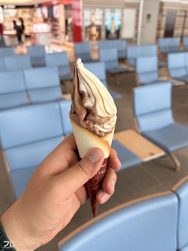 비행기 기다리면서 마지막 남은 동전을 털기 위해 크레미아 반반 아이스크림.