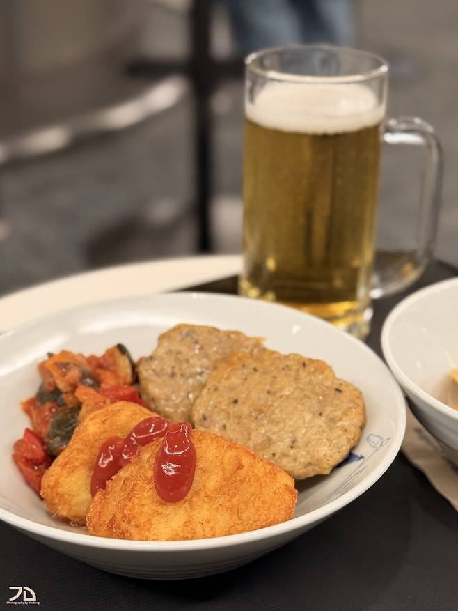 지방에서 새벽부터 출발하느라 배가 고팠기에 해시브라운, 소시지 패티, 라따뚜이로 배를 채워봅니다. 나초와 스텔라 맥주도 한잔.