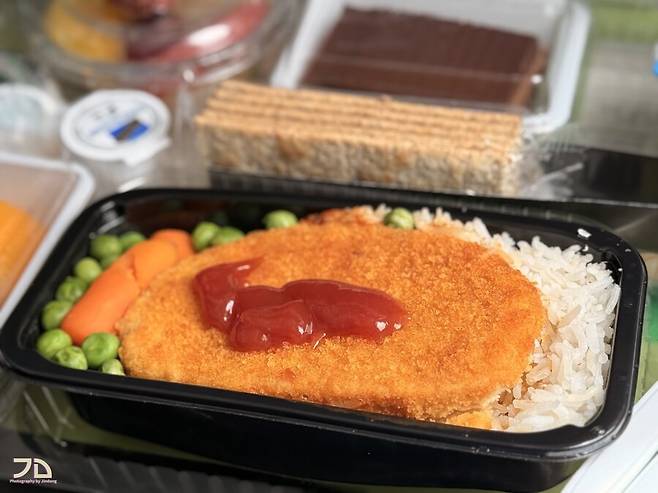 메인디쉬는 채식 슈니첼과 밥, 그 아래에 야채가 깔려있습니다. 채식 슈니첼은 그래도 생각보다 꽤 맛있고 먹을만 했습니다. 밥이 좀 흩날리는 밥이었던게 흠이지만...