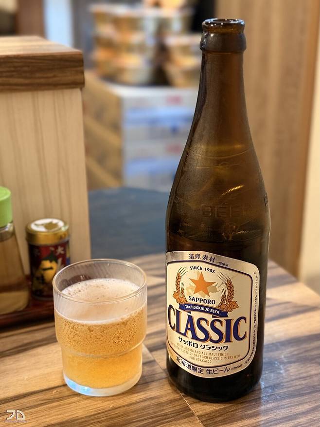 맥주는 삿포로 클래식 병맥주가 나옵니다.