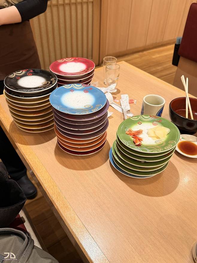 초밥 약 26접시, 우동 2접시, 맥주 2잔, 가짜맥주 2병, 디저트 3개까지 해서 13,800엔 정도 나왔습니다. 가성비 좋네요 -_-b