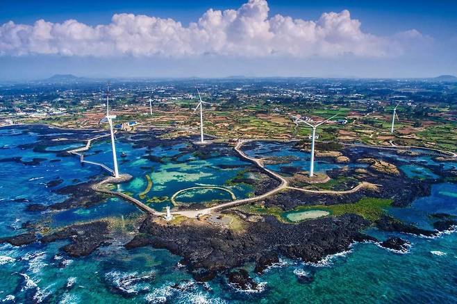 제주에서도 손꼽히는 드라이브 명소로, 바다 옆을 따라 늘어선 하얀 풍차들이 이국적인 풍경을 만들어주는 곳입니다. 파도가 부서지는 소리와 시원한 해풍이 함께해 잠깐만 머물러도 온몸이 가벼워지는 느낌을 줍니다. 특히 해질녘에는 붉게 물든 하늘과 풍차가 겹쳐져 여행자들이 꼭 찾는 포토 포인트로 사랑받고 있어요.