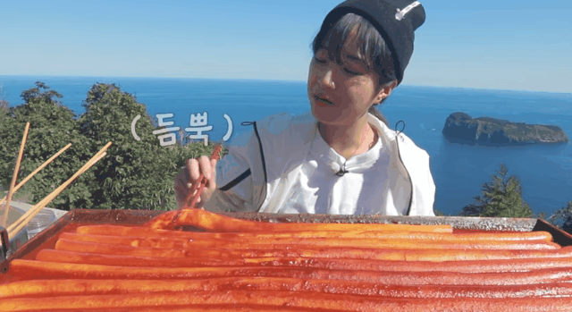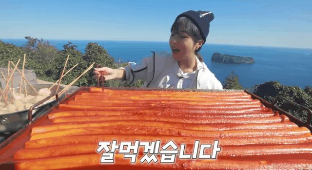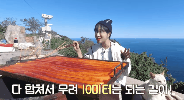 쯔양의 10미터 가래떡떡볶이 먹방 울릉도편