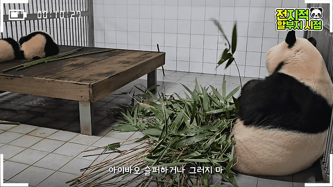 아부지가 진지한 이야기를 했건만, 러바오는 그 와중에 뭉텅이로 대나무를 갖다 버리려 하네요ㅋㅋ