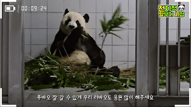 "우리 푸바오도 잘 적응할 수 있게 아이바오가 잘 응원해 주고."