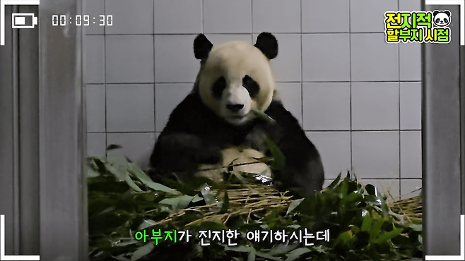 아부지가 진지한 이야기를 했건만, 러바오는 그 와중에 뭉텅이로 대나무를 갖다 버리려 하네요ㅋㅋ