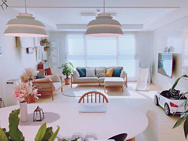 먼저 저희 집 메인 거실인데요. 저는 밝고 따뜻한 분위기를 좋아해요.