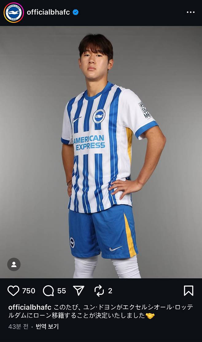 윤도영 일본인이었나→브라이턴 일본어로 한국 선수 오피셜…韓 팬 극대노→결국 삭제