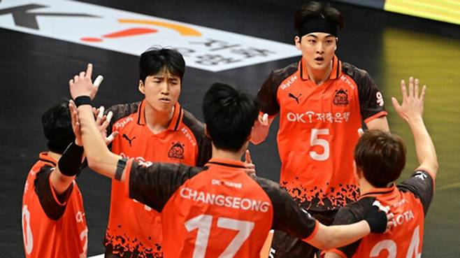 ▲ 득점 후 기뻐하는 OK저축은행 선수들