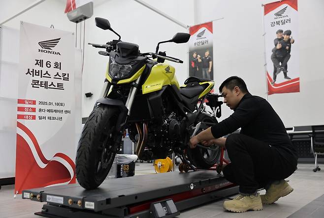 이날 치러진 혼다 모터사이클 서비스 스킬 콘테스트는 딜러 및 판매점의 서비스 분야 전반에 걸친 테크니션의 역량을 평가하는 대회로, 2006년 혼다코리아에서 업계 최초로 도입했다. 테크니션의 서비스 전문성을 강화하고, 궁극적으로 고객 서비스 품질 향상을 목표로 한다. 이번 대회에는 전국 혼다 모터사이클 딜러 5개사에서 테크니션 10명이 참가했으며, 혼다코리아 임직원 및 딜러사 임직원과 그 가족들도 참관해 열띤 현장 분위기를 함께했다.