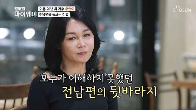 첫 번째 남편은 우연이의 음악 활동을 처음으로 도와준 사람이자, 23살 연상의 클럽 악단장 출신이었다. 힘든 결혼 생활 끝에 남편의 빚보증으로 집안이 무너졌고, 경제적 어려움까지 겹치면서 결국 이혼에 이르게 됐다.
