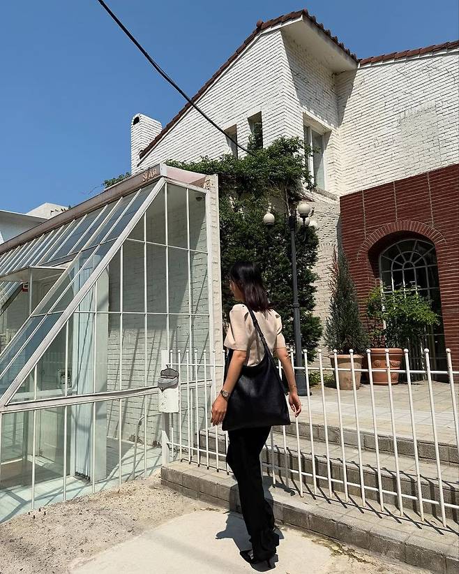 이지혜는 베이지 톤 반팔 블라우스에 슬림한 블랙 팬츠를 매치해 깔끔하고 단정한 실루엣을 강조했다. 밝은 상의와 대비를 이루는 블랙 하의 조합은 안정감 있는 밸런스를 보여주며, 심플하지만 결코 밋밋하지 않은 스타일을 완성했다. 여기에 넉넉한 사이즈의 블랙 가죽 숄더백을 가볍게 걸쳐 실용성과 스타일을 모두 챙긴 모습이다.