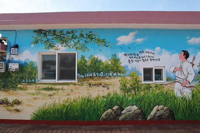 눈과 마음을 편안하게 만드는 선율 같은 그림들 우리나라의 정겨운 시골 풍경을 아름다운 언어로 빚어냈던 시인의 감수성을 닮아, 벽화들 역시 하나같이 따뜻하고 부드러운 색채를 띠고 있습니다.