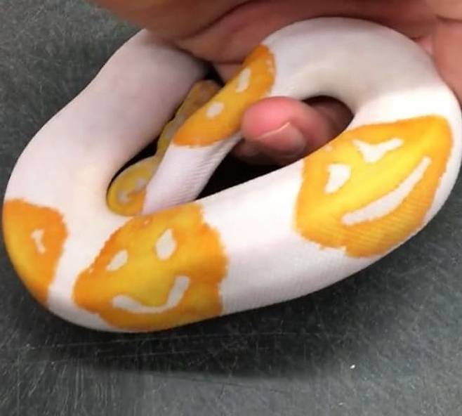 사연은 이렇습니다. SNS상에는 몸에 노란색으로 웃는 모양의 이모티콘이 무늬로 새겨져 있는 구렁이 모습이 담긴 사진이 올라온 것.