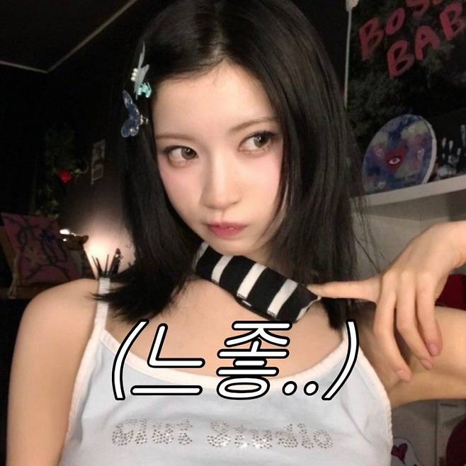 스트라이프 탑에 페플럼 블랙 미니스커트, 그리고 레그워머까지 매치하여 요즘 다시 유행하는 Y2K 무드를 완벽하게 재현했습니다. 시크함과 귀여움을 오가는 이 조합은 아무나 소화하기 어려울 것 같은데요. 아사의 뛰어난 패션 소화력이 돋보이는 스타일입니다.