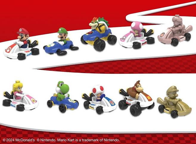맥도날드 오픈런하고 싶은 해피밀 토이가 등장했다. 주인공은 마리오 카트. 10종의 마리오 카트로 구성된 이번 해피밀은 1차 11월 21일 목요일 새벽 4시, 2차 12월 12일 목요일 새벽 4시에 각각 오픈한다. 마리오부터 쿠파까지 책상 위에 줄 세워 두면 뿌듯할 것 같다.