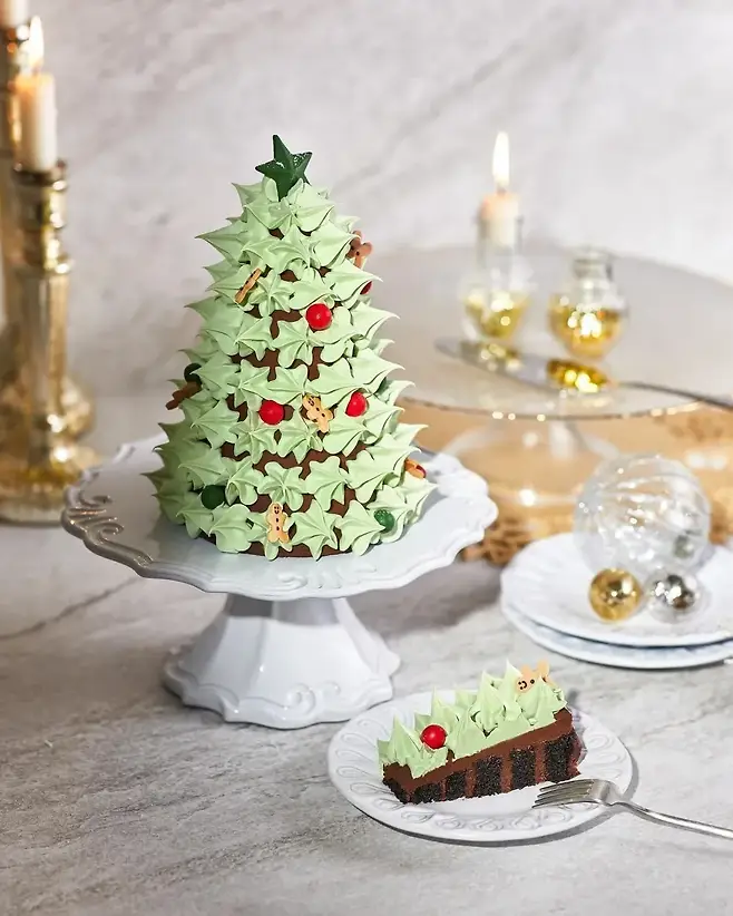 호텔 크리스마스 케이크는 구매하기 어렵다? 조선호텔이 스타벅스와 함께 만든 케이크는 스타벅스에서 구매할 수 있다. ‘조선델리 노엘 트리 케이크’는 가나슈와 블랙 벨벳 시트를 층층이 쌓은 후 초록색 크림으로 트리 모양을 만든 크리스마스 케이크다. 한정 수량으로 스타벅스 앱에서 11월 25일부터 예약할 수 있고, 12월 20일부터 원하는 매장에서 수령할 수 있다. 픽업 가능한 매장이 한정되어 있으니 확인 후 구매하자.