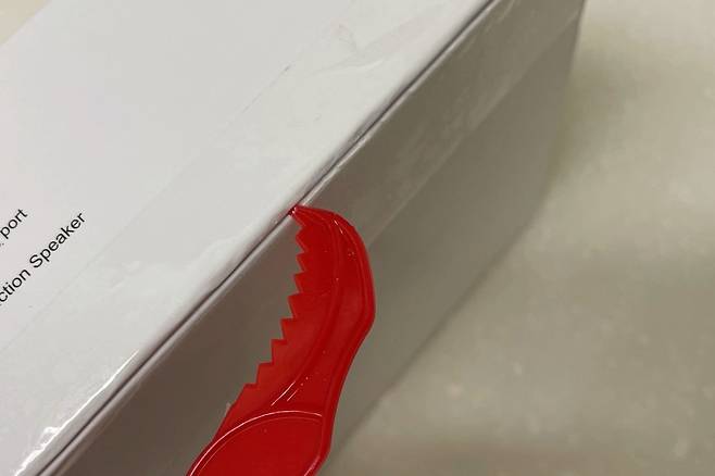 택배가 오면 박스에 위 사진처럼 테이프가 붙여 있을 때가 있죠. 이럴 때 일회용 커터칼을 활용해 보세요.