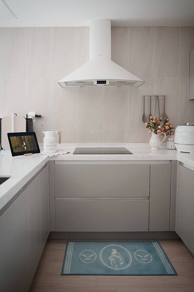 가족들이 같이 모였을 때 가장 많은 시간을 보내는 곳은 바로 주방이에요. 주방에서 요리를 하면서도 아이들의 모습을 볼 수 있게 ㄷ자형 주방으로 리모델링 했었습니다. 주방은 이사 올 때랑 크게 바뀐 건 없지만 소소하게 편리한 도구와 예쁜 소품들로 변화를 주고 있어요.