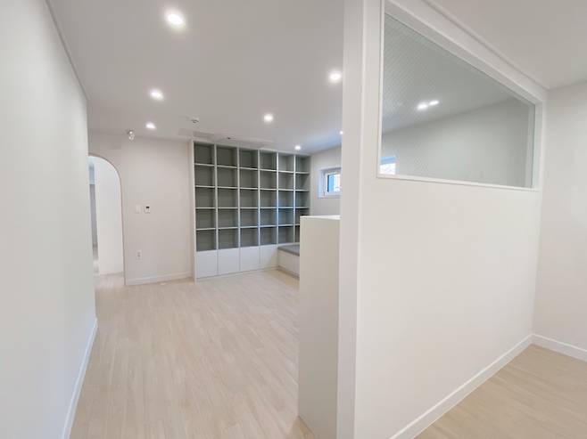 거실보다 넓은 공간이라서 공간활용을 위해 서재와 멀티룸은 가벽으로 분리해뒀습니다.