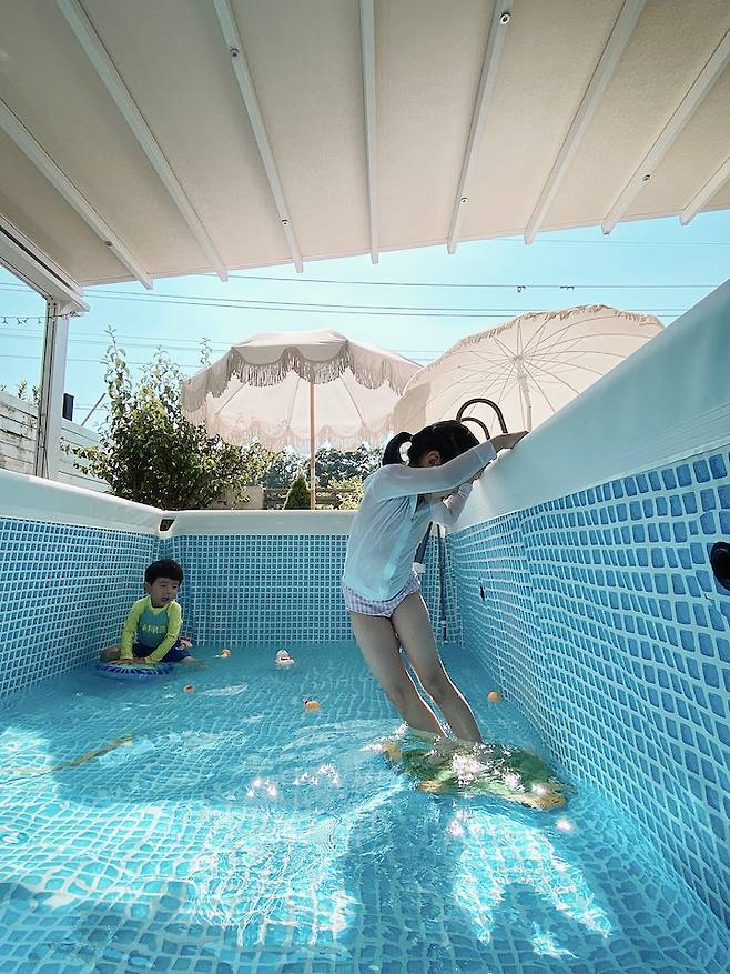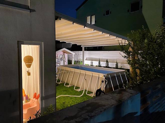 풀장은 아이들의 놀이 공간이기도 하고, 저의 휴식 공간이기도 해요. 여름에는 이 풀장 덕분에 어디 놀러 가지 않아도 시원하게 보낼 수 있습니다. 어느 풀빌라 부럽지 않아요.