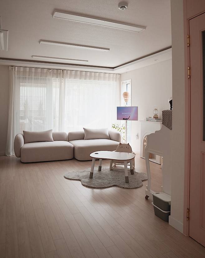티비를 보는 거실이 아니라, 가족들의 공간이자 아이들의 놀이터가 되는 공간을 만들려고 하다 보니 아이들의 안전이 최우선으로 고려되는 거 같아요.