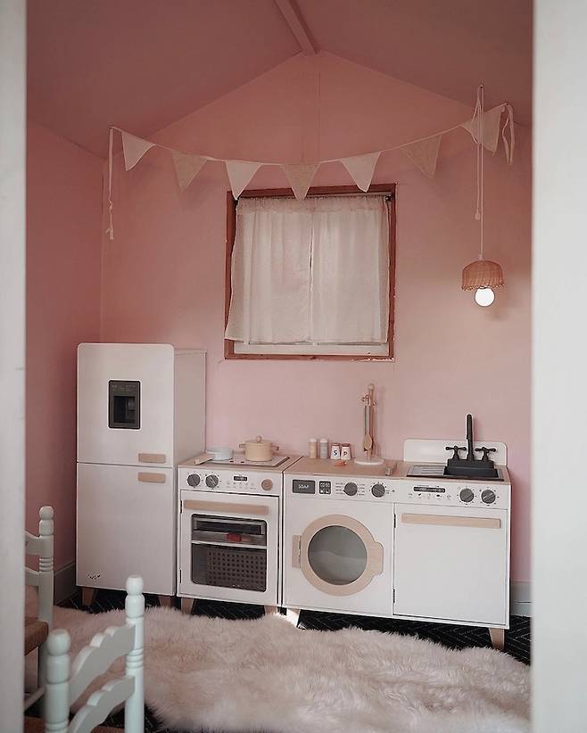 얼마 전에 내부 페인트를 아이들과 함께 새로 칠했어요. 역시 엄마의 취향을 반영한 핑크입니다. 플레이하우스는 정말 작아서 어른들은 고개를 살짝 숙이고 들어가야 해요. 하지만 아이들에게는 꿈 같은 곳이랍니다 ^^