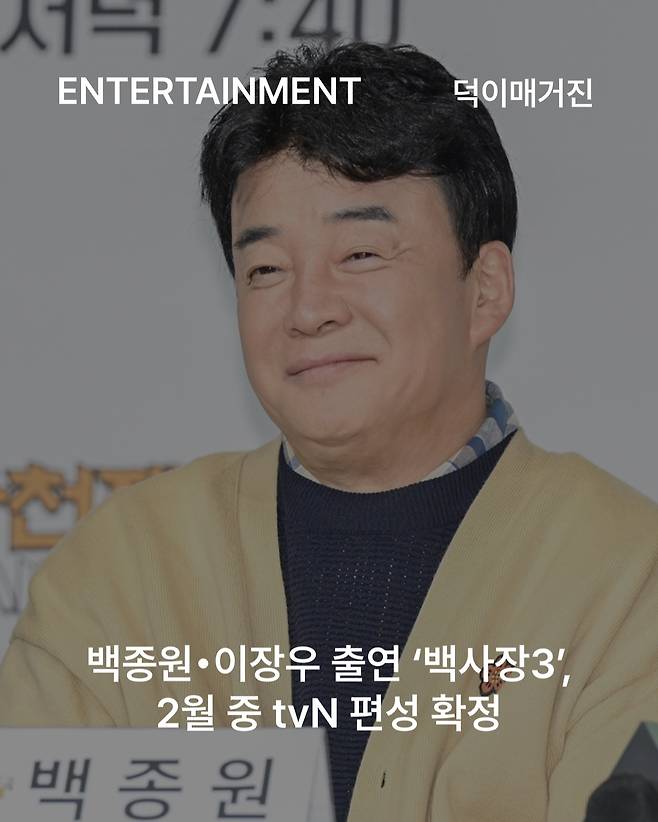 tvN은 14일 “‘장사천재 백사장’이 ‘세계 밥장사 도전기 백사장3’라는 새 제목으로 2월 중 방송될 예정”이라고 밝혔습니다. 시즌3는 지난해 4월 촬영을 마쳤으며, 2026년 1분기 tvN 예능 라인업을 확정하는 과정에서 편성이 결정됐습니다.