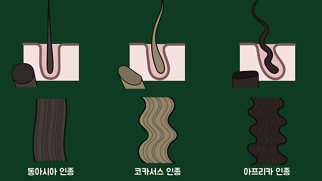 머리카락의 주성분은 케라틴(Keratin)이라는 단백질이고, 자라나는 형태에 따라 생머리(직모), 반곱슬머리(파상모), 곱슬머리(축모) 등으로 분류합니다. 인종에 따라 생머리가 많은 집단이 있고, 곱슬머리가 많은 집단이 있는데, 유일한 특징은 아니라서 의문이 생깁니다. 무엇이 머리카락의 형태를 결정짓는 걸까요?